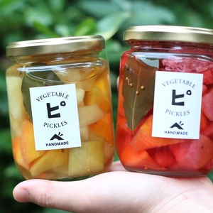自家栽培の旬のお野菜をぎゅぎゅっと詰め込んでピクルス漬けにしました。有機りんご酢と種子島産の洗双糖、自家栽培ハーブ等でつくるピクルス液のさわやかな酸味と甘みがお楽しみいただけます。箸休めに、お酒のおともに、ギフトにもどうぞ。
